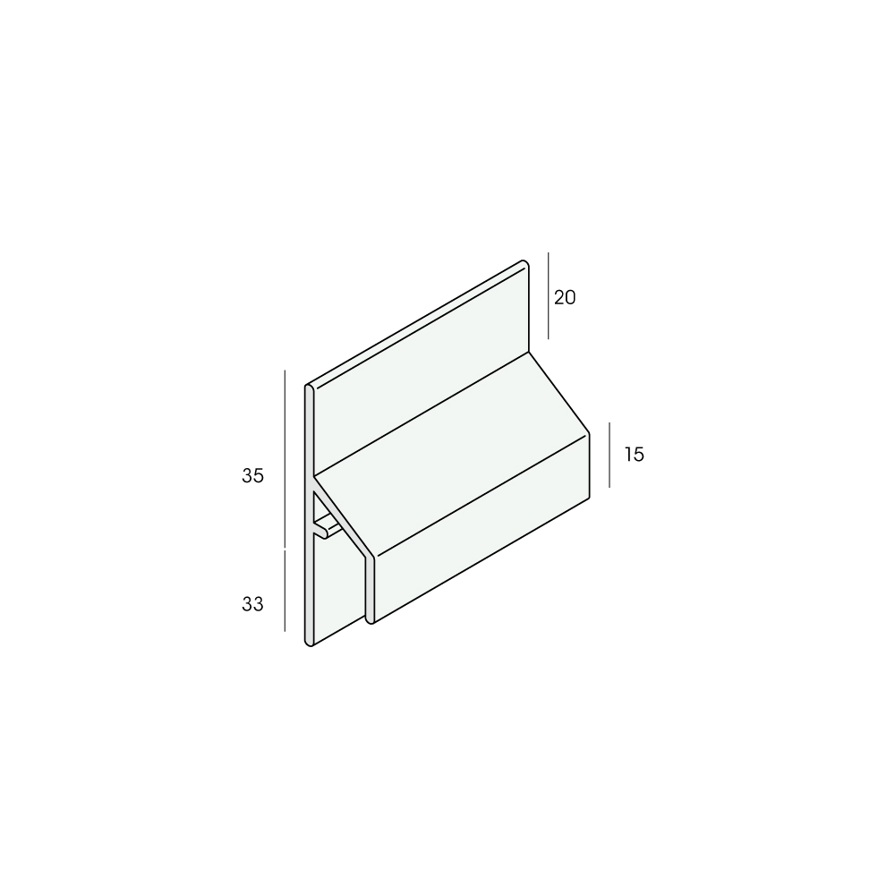 Met het Keralit trim/kraal aansluitprofiel werkt u de bovenkant af. Doordat het profiel bovenaan smal is kan het profiel onder een daktrim worden geschoven.